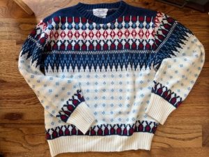 I like to finish knitting one big project like a sweater or cardigan before I start the next one, or at least until I can’t carry it in my bag easily anymore, so I have an excuse to begin the next one. Sometimes it is good to have a second project on the go – I call it mindless knitting, where I don’t have to look very much – which I can keep my hands busy during Zoom or other meetings, which helps me listen.